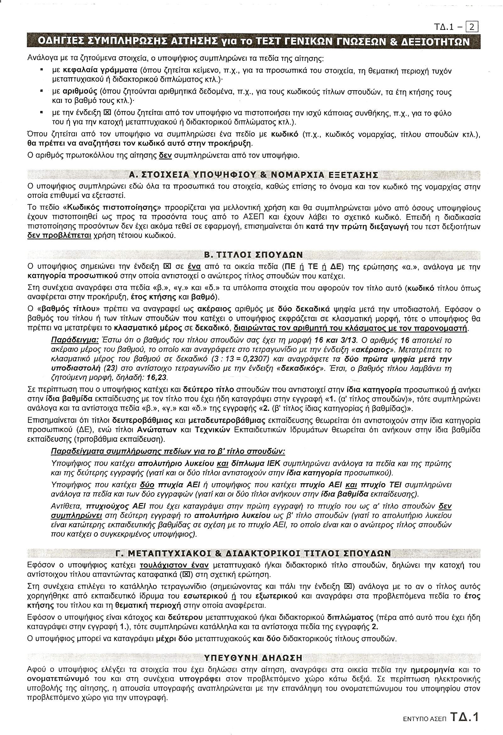 Η αίτηση Το έντυπο της αίτησης δεν πρόκειται να δυσκολέψει τους υποψηφίους κατά τη συμπλήρωσή του, καθώς χαρακτηρίζεται από απλότητα και τα ζητούμενα στοιχεία είναι ελάχιστα. Αποτελείται από δύο μόνο σελίδες, από τις οποίες μόνο η πρώτη συμπληρώνεται από τους υποψηφίους. Η δεύτερη σελίδα περιέχει αποκλειστικά πληροφορίες και οδηγίες για τη σωστή συμπλήρωσή της.