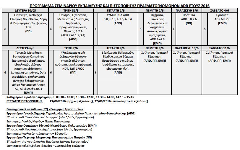 Σεµινάριο εκπαίδευσης πραγµατογνωµόνων ADR θα υλοποιήσει το υπουργείο Υποδομών, Μεταφορών και Δικτύων το χρονικό διάστημα από 30 Μαΐου μέχρι 13 Ιουνίου 2016.