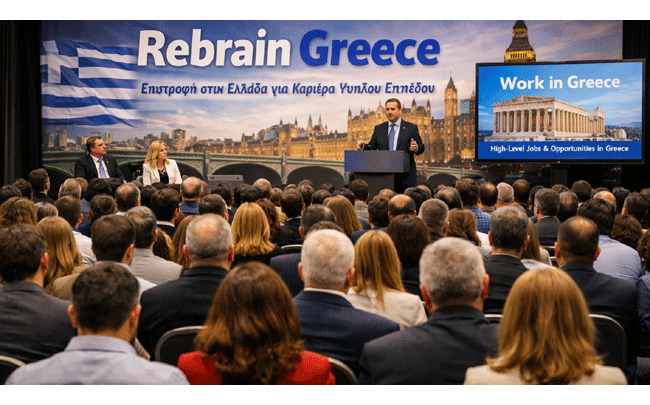 Στο Λονδίνο στις 9 Μαΐου θα πραγματοποιηθεί η νέα εκδήλωση «Rebrain Greece» του υπουργείου Εργασίας, η οποία στοχεύει στον επαναπατρισμό ελλήνων του εξωτερικού μέσω της επανασύνδεσής τους με την εγχώρια αγορά εργασίας.