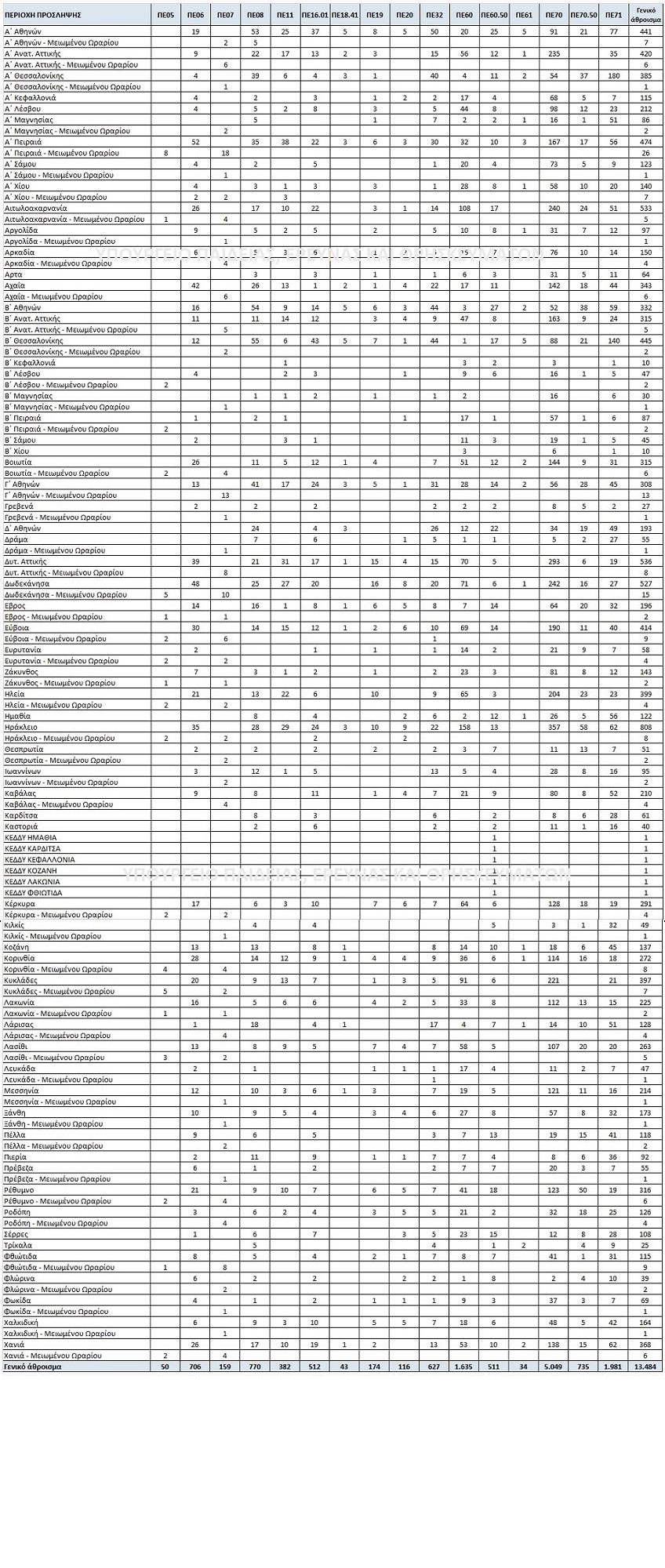 * Στο συνημμένο αρχείο θα βρείτε αναλυτικό πίνακα με τις προσλήψεις.